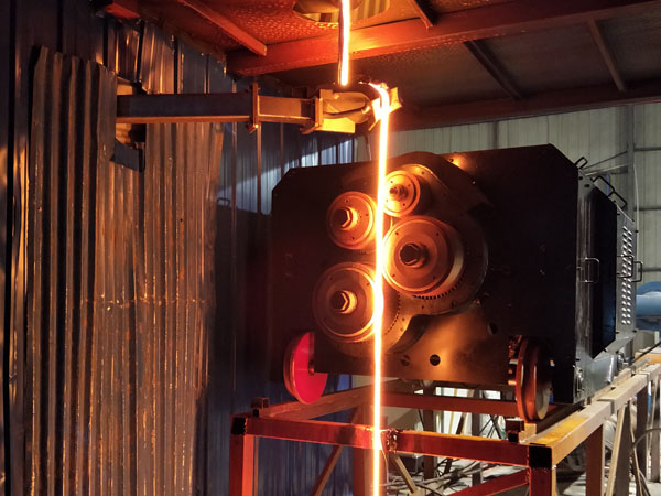 巖棉加熱電爐生產(chǎn)線是由西格馬與中船重工第七零二所合作開發(fā)的巖棉板生產(chǎn)線,2017年立項(xiàng),2018年10月在洛陽市高新區(qū)河洛路后營(yíng)工業(yè)區(qū)進(jìn)行了年產(chǎn)3萬噸中試試驗(yàn)成功出棉,中試生產(chǎn)線采用中船重工第七零二所年產(chǎn)3萬噸離心機(jī)、吹離風(fēng)機(jī)系列設(shè)備、可調(diào)節(jié)溜槽、集棉室和西格馬生產(chǎn)的巖棉加熱電爐,生產(chǎn)現(xiàn)場(chǎng)設(shè)備總長(zhǎng)度50m,中試生產(chǎn)線利用直徑為1-8mm玄武巖、白云石、礦渣生產(chǎn)巖棉,進(jìn)行了電爐的性能、功率、加熱能力、熔化能力、電消耗試驗(yàn),電爐與巖棉成纖設(shè)備的匹配性能試驗(yàn),每次成綿開機(jī)實(shí)驗(yàn)15-20分鐘,一次性制備巖棉300 Kg。